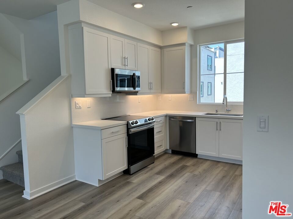 This brand-new, three-story townhome offers the perfect blend of style, functionality, and modern living. Located in a gated community, this home boasts a breathtaking rooftop deck ideal for relaxing or entertaining with panoramic views. Step inside to discover a versatile flex-space with upgraded, stylish LVP flooring that's both durable and easy to maintain. This space is perfect for a home office, study area, workout room, or additional storage--tailor it to your needs! The open-concept second floor is designed for contemporary living. The spacious great room flows seamlessly into a beautifully appointed kitchen, featuring white shaker-style cabinets, quartz countertops, under-cabinet lighting, and sleek stainless steel all-electric appliances. Select rooms already have window treatments installed, adding to the move-in readiness. On the third floor, the master bedroom serves as a private retreat, complete with a large walk-in closet and a vanity with dual sinks. Both bedrooms include en-suite bathrooms, finished with elegant 12"x24" tile, ensuring maximum privacy and comfort. The highlight of this townhome is the expansive rooftop deck, offering a perfect spot for morning coffee, evening relaxation, or entertaining guests under the stars. This home is designed with energy efficiency in mind, including solar panels, a full suite of appliances (including a washer and electric dryer), and pre-wiring for an EV charger in the attached 2-car garage. The community features a cozy common area with a covered dining space and two stylish BBQs, perfect for hosting friends and family. Situated just steps away from the vibrant 4th Street corridor and the Michelin-rated restaurant Heritage, this townhome offers the best of urban living. Cal State Long Beach is also nearby, and with a WalkScore of 94, you're within easy reach of everything you need. Representative photos of the model home may be included.