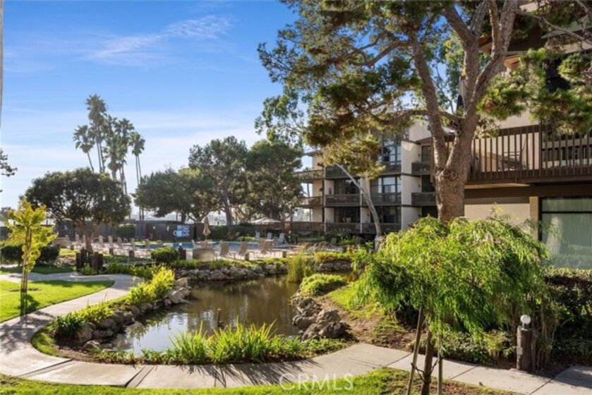 Welcome to Marina Pacifica the gateway to Naples Island just off 2nd & PCH. Rare Ground-Level End-Unit Marina Pacifica “BE” model floorplan with 1 Bedroom & Den, spanning 1,012 square feet, located in KEY 16. This highly upgraded single-level condo offers the perfect blend of indoor-outdoor living with a sunken living room, electric blinds, corner fireplace, windows on two sides flooding the space with natural light. The main bedroom features wall-to-wall closets with built-in organizers, while the versatile den provides endless possibilities. Convenient side-by-side laundry area adds to the home's functionality. Step outside to your large wrap-around patio with bar seating overlooking serene greenspace, fountains, and stunning sunset views. 24/7 guarded HOA entrance and convenience of two side-by-side parking garage spaces plus guest parking right outside your unit, steps from marina water access. Short walk to water front dog park and the private HOA bridge connecting directly to Marina Pacifica Shopping Center including Theater and Boat Rental. Resort-style amenities include five HOA pools and beautifully maintained grounds. This is Marina Pacifica living at its finest in one of Long Beach's most desirable waterfront communities!