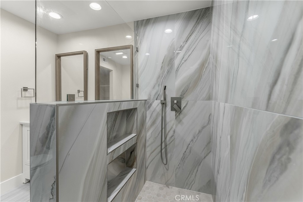 BEAUTIFULLY REMODELED VA APPROVED CONDO! The gorgeous, grand lobby leads you into the building to a FIRST FLOOR, DOUBLE DOOR ENTRY, END UNIT with only 1 SHARED WALL to this beautifully remodeled condo. The home has new kitchen, Marble bathrooms, new floors, windows, recessed lighting, paint, appliances, plantation shutters, walk-in closet and much more! Beautiful gated VA APPROVED community with 24 hour guard, tennis court, pool, jacuzzi, his and her saunas, gym, recreation room, 2 roomy parking spaces with storage plus additional guest parking. The entire community is lush with landscaping for a leisurely stroll with your 2 permitted pets. Bixby Riviera is conveniently located next to shopping, freeways, restaurants, Cal State Long Beach and much more. SOME PHOTOS VIRTUALLY STAGED. Buyers to do their due diligence on all info.