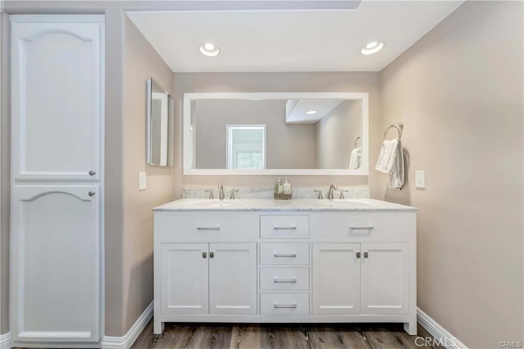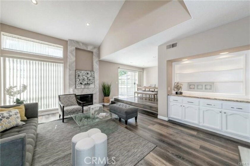 Welcome to this beautifully updated home nestled in the heart of Bixby Village! This two-story Cape Cod-style townhome offers the perfect blend of comfort, convenience, and style in one of the area's most desirable communities! With newly updated luxury vinyl floors this home is perfect for everyday living and entertaining. Step inside the foyer to find high-pitched ceilings, a centerpiece fireplace, and an inviting open floor plan leading to the living & dining room. The dining room opens to a huge backyard sized enclosed patio, perfect for entertaining, gardening & more! The kitchen is light, bright & updated with granite counters and a charming breakfast nook looking out to the front patio. A large first-floor bedroom doubles as an office or perfect guest room with a first floor updated full bathroom. The upstairs primary bedroom suite comes complete with a gorgeous remodeled bathroom with free-standing soaking tub, dual sink vanity, skylight, built-in cabinets and a massive walk-in closet. Did I mention the primary suite balcony that's perfect for morning coffee? The spacious third-bedroom suite is drenched with natural light & also has its own updated full bathroom. Additional features include built-in cabinets throughout, a two-car attached garage with laundry, and direct access to the home. Bixby Village is known for its extensive green space & walking paths, two refreshing pools & a great community clubhouse. With it's coastal location, public golf course and easy proximity to shopping, restaurants, & top rated schools, this home has it all! Photos to come! Home is partly virtually staged.
