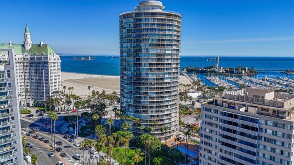 A huge price improvement! Enjoy breathtaking sunset and night views from this beautiful 3 bedroom, 2 bath condo in the iconic International Tower on the Long Beach waterfront. This exceptional residence features floor-to-ceiling windows showcasing stunning vistas of the beach, marina, Catalina Island, the Vincent Thomas Bridge, and Shoreline Village, with prime seating to watch the Grand Prix right from your home. Relax on your private balcony as the sun sets over the ocean and the twinkling evening lights transform the coastline into a spectacular view. The interior includes hardwood flooring, multiple closets for ample storage, and a convenient stackable washer and dryer. two assigned parking spaces are included. Located just moments from the beach, Shoreline Village, the marina, and vibrant downtown Long Beach, this home offers the perfect blend of coastal charm and modern comfort. Residents enjoy premium amenities including a heated pool, fitness center, 24-hour security, and on-site management. This is a rare opportunity to live in one of Long Beach’s most desirable high-rises.