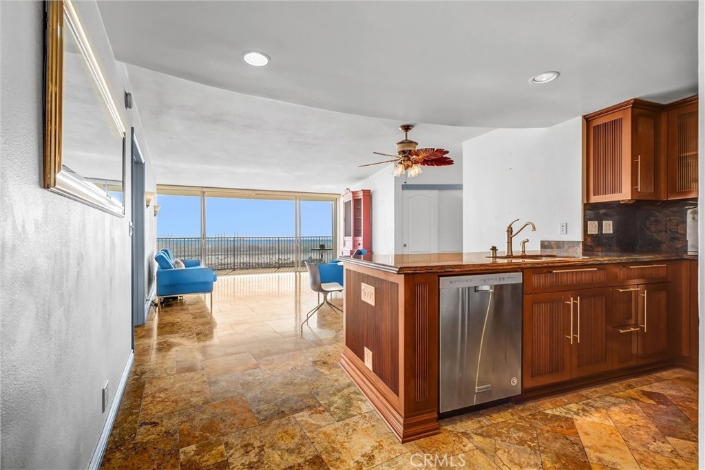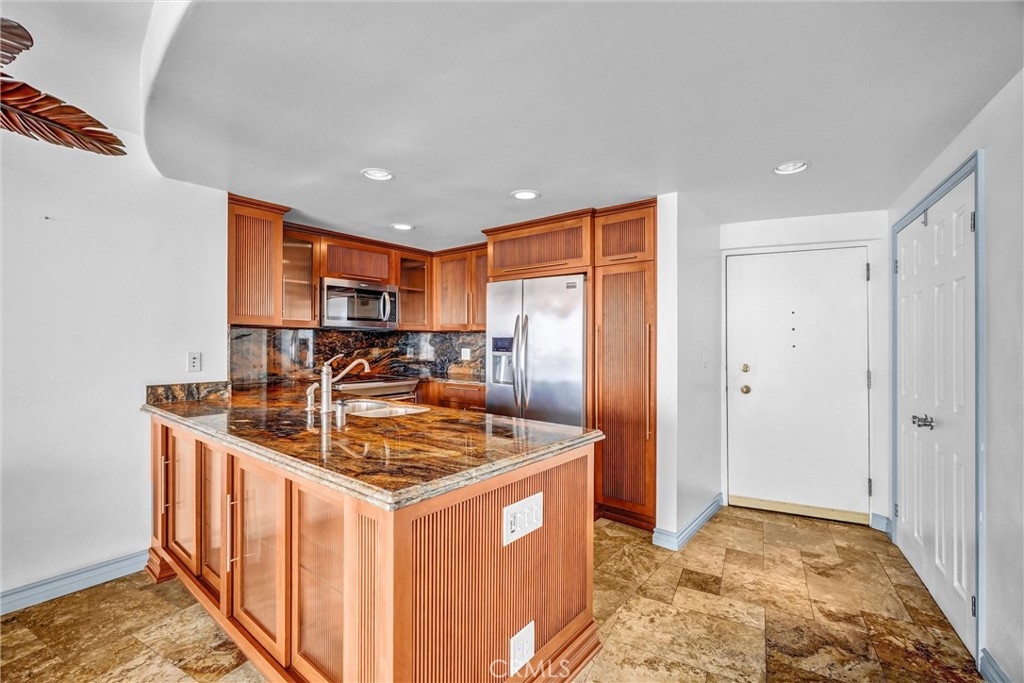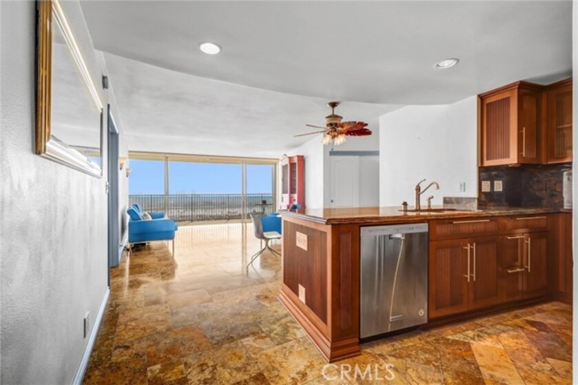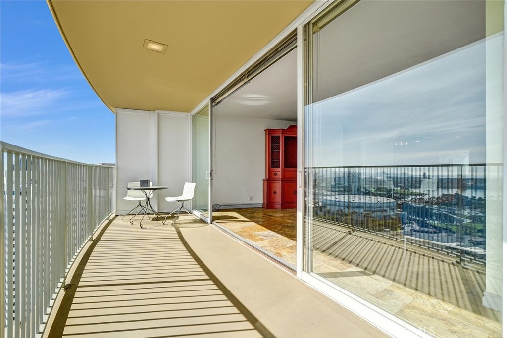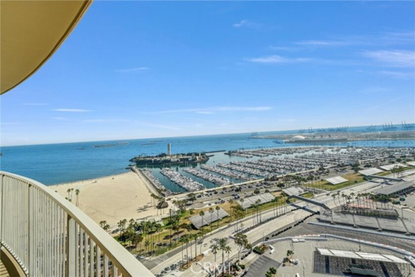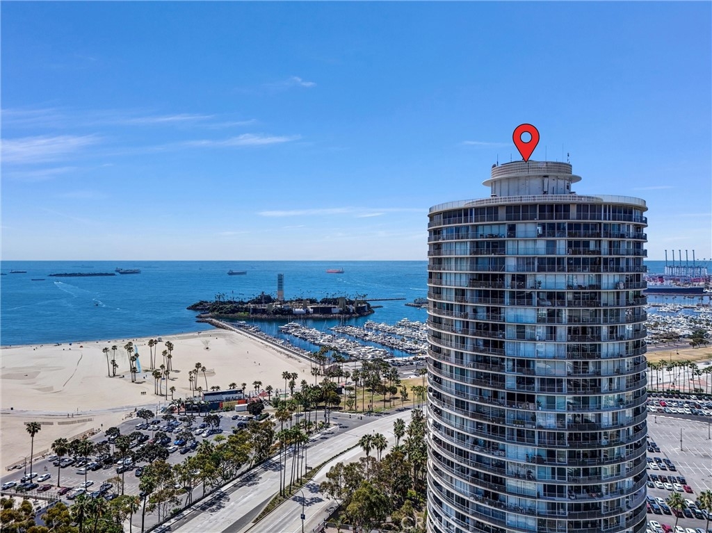 Spectacular 31st-floor ocean-view residence at the iconic International Tower Long Beach, two assigned subterranean parking spaces, breathtaking panoramic views from every room, and a large curved wrap-around balcony. Enjoy sweeping vistas of the Pacific Ocean, beach, marina, Catalina Island, the historic RMS Queen Mary, sparkling city lights, and unforgettable sunsets. This home also provides one of the best private vantage points in the city for the world-famous Long Beach Grand Prix. This beautifully maintained 1-bedroom, 1.5-bath residence features high-quality finishes throughout, including custom cabinetry with intelligent soft-close doors and expanded storage, granite countertops, stainless steel appliances, and timeless travertine flooring. The primary bathroom showcases artistic designer ceramic tile work. Floor-to-ceiling sliding glass doors maximize natural light and frame the spectacular ocean views, while an easy-to-operate shade system lets you adjust the light for comfort and ambiance. The spacious bedroom includes a custom closet and mirrored accents. Additional highlights include two subterranean parking spaces, an in-unit washer and dryer, refrigerator, microwave, and generous storage. Residents enjoy resort-style amenities, including 24-hour concierge service, a pool, a spa, a fitness center, and secure building access. Located in the heart of downtown Long Beach, just steps from the beach and near the Long Beach Convention Center, Pine Avenue Long Beach, and the East Village Arts District, along with renowned restaurants, shopping, entertainment, and nightlife. A rare opportunity to experience luxury high-rise living with truly unmatched ocean views. Opportunity is knocking!