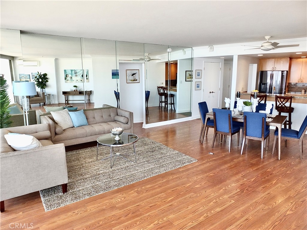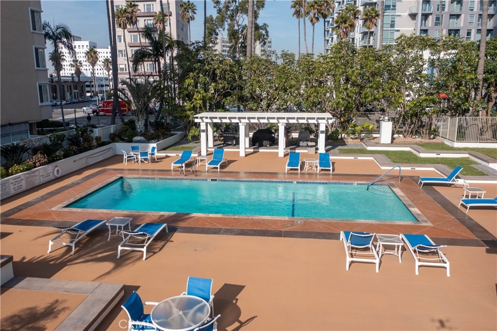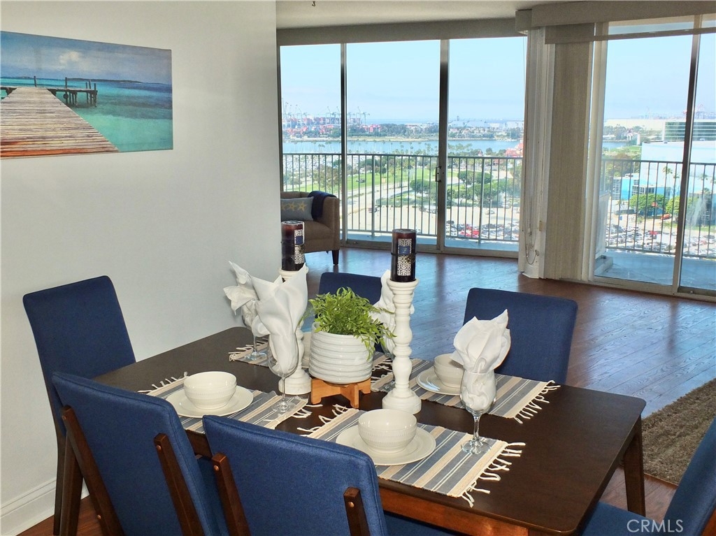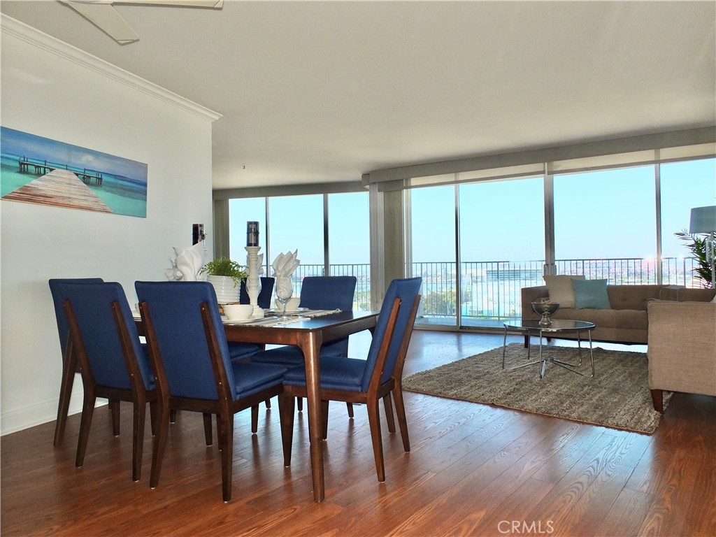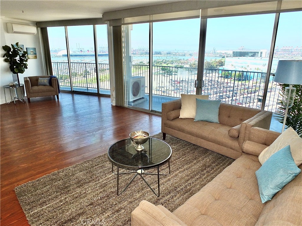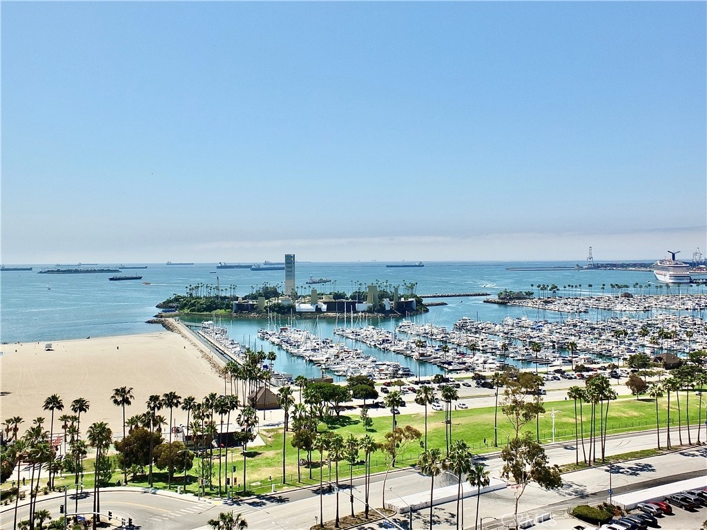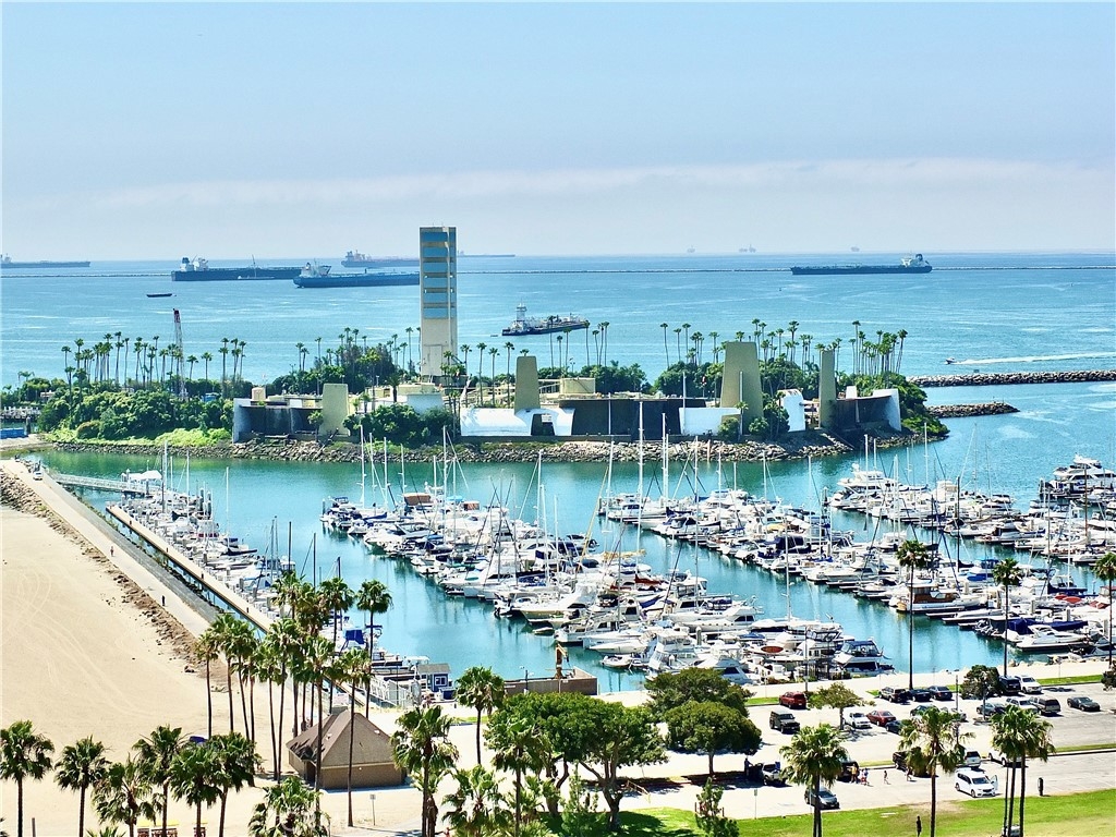 With the 2028 Olympics coming in 2028 you will not want to miss the opportunity to live near the center of the action! As we welcome you to the International Tower where unit 2008 has it all; luxury and views with a wrap round balcony affording views from Catalina to Palos Verdes to downtown Los Angeles to the mountain peaks, plus evening city lights over the harbor and bridges. This 3-bedroom unit has been upgraded throughout, currently modified with one bedroom opened up to a larger living area. Both bathrooms have been updated, extra closet space was added, as well as wood floors. Inside laundry. This is one of the rare units that has split unit heating and air conditioning throughout. Plus this 20th floor home has the extra luxury of 10 inch higher ceilings. Includes two parking spaces and a deeded storage unit in the controlled access parking garage. The International Tower is an iconic full-service luxury complex that features a large lobby with ocean views, 24-hr security and concierge, heated outdoor pool, state of the art fitness center, conference and meeting rooms, a secure mail room with package lockers and monthly activities to encourage a sense of community. The HOA includes basic frontier cable and internet. Small pets are welcome, the staff includes on-site manager and assistant manager and maintenance staff.