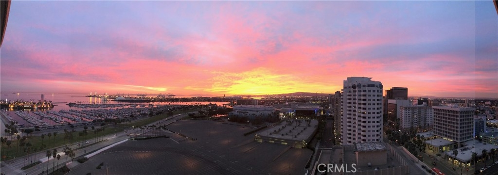 Nestled high atop the iconic and beautiful International Tower, recognizable from multiple blockbuster movies. This spacious and stunning 1260 sqft residence offers sweeping unobstructed views from downtown Los Angeles, the Hollywood sign, Santa Monica Mountains, through to the Palos Verdes Hills, and continuing down the Orange County coastline. Due to the circular construction of the building, the view is beyond 180°, making it the best and most breathtaking view you’ll likely experience from any residence in Los Angeles County. Every evening you’ll enjoy jaw-dropping sunsets from your spacious 90-foot wrap-around balcony. The circular shape of the building and its solid concrete construction offer you complete privacy from any neighbors. Wow your friends and family with this spectacular space for entertaining. Spacious open-concept kitchen and living space. Plus exhilarating aerial views of the Long Beach Grand Prix every April! Experience the best of vibrant downtown Long Beach living, where restaurants, nightlife, shops and supermarkets are all within walking distance. You’ll rarely need to drive your car, but conveniently, the unit includes 2 dedicated large parking spaces. Quick access with no stairs from the unit to the parking spaces. Guest parking is also available. Upon entering the International Tower, guests and residents are welcomed by 24/7 concierge desk service with security and package management. A beautifully updated lobby complete with a grand piano, newly remodeled community room, pool & gym, and conference room, all of which have been stylishly refreshed, enhancing the luxury high-rise ambiance. Unit 2508 has been thoughtfully reconfigured to maximize space and showcase its breathtaking views. A wall removal now creates an expansive, open-concept living area between the two primary suites, positioned on opposite sides of the home for optimal privacy. One suite includes a generous walk-in closet, and every room features spectacular panoramic views. Additional highlights include: Remote control blinds throughout, In-unit washer and dryer, Ceramic tile flooring throughout, including the balcony, A modern kitchen with new stainless-steel appliances, wine fridge, recessed lighting, a view-rich breakfast counter, Fresh, neutral interior paint. This residence offers exceptional design, rare views, and coveted privacy. Move-in ready to become your next spectacular showpiece home