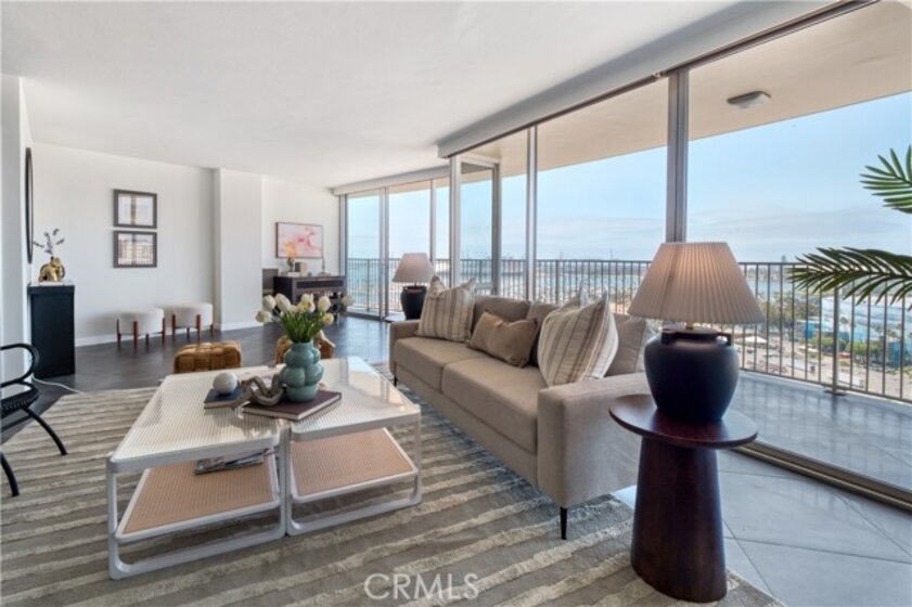 Nestled high atop the iconic and beautiful International Tower, recognizable from multiple blockbuster movies. This spacious and stunning 1260 sqft residence offers sweeping unobstructed views from downtown Los Angeles, the Hollywood sign, Santa Monica Mountains, through to the Palos Verdes Hills, and continuing down the Orange County coastline. Due to the circular construction of the building, the view is beyond 180°, making it the best and most breathtaking view you’ll likely experience from any residence in Los Angeles County. Every evening you’ll enjoy jaw-dropping sunsets from your spacious 90-foot wrap-around balcony. The circular shape of the building and its solid concrete construction offer you complete privacy from any neighbors. Wow your friends and family with this spectacular space for entertaining. Spacious open-concept kitchen and living space. Plus exhilarating aerial views of the Long Beach Grand Prix every April and aerial views of Olympic sailing & volleyball events in 2028! Experience the best of vibrant downtown Long Beach living, where restaurants, nightlife, shops and supermarkets are all within walking distance. You’ll rarely need to drive your car, but conveniently, the unit includes 2 dedicated large parking spaces. Quick access with no stairs from the unit to the parking spaces. Guest parking is also available. Upon entering the International Tower, guests and residents are welcomed by 24/7 concierge desk service with security and package management. A beautifully updated lobby complete with a grand piano, newly remodeled community room, pool & gym, and conference room, all of which have been stylishly refreshed, enhancing the luxury high-rise ambiance. Unit 2508 has been thoughtfully reconfigured to maximize space and showcase its breathtaking views. A wall removal now creates an expansive, open-concept living area between the two primary suites, positioned on opposite sides of the home for optimal privacy. One suite includes a generous walk-in closet, and every room features spectacular panoramic views. Additional highlights include: Remote control blinds throughout, In-unit washer and dryer, Ceramic tile flooring throughout, including the balcony, A modern kitchen with new stainless-steel appliances, wine fridge, recessed lighting, a view-rich breakfast counter, Fresh, neutral interior paint. This residence offers exceptional design, rare views, and coveted privacy. Move-in ready to become your next spectacular showpiece home
