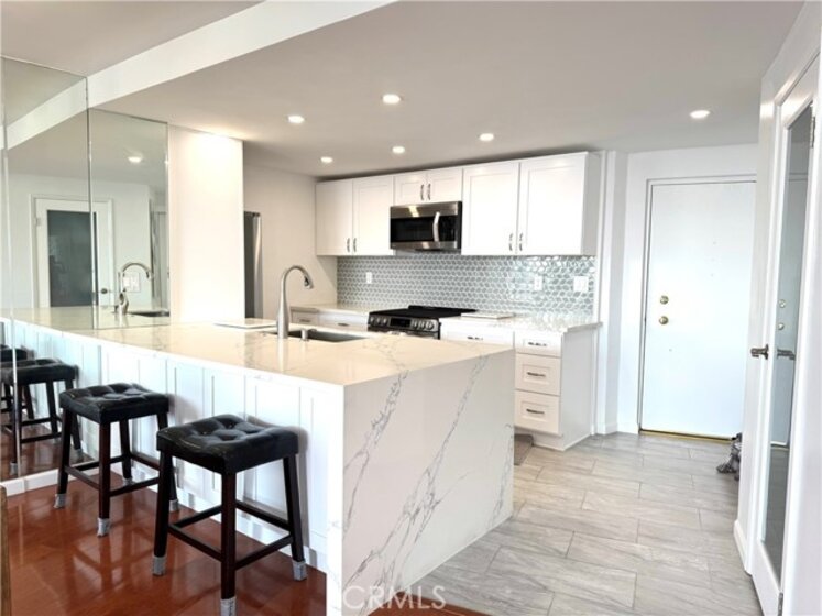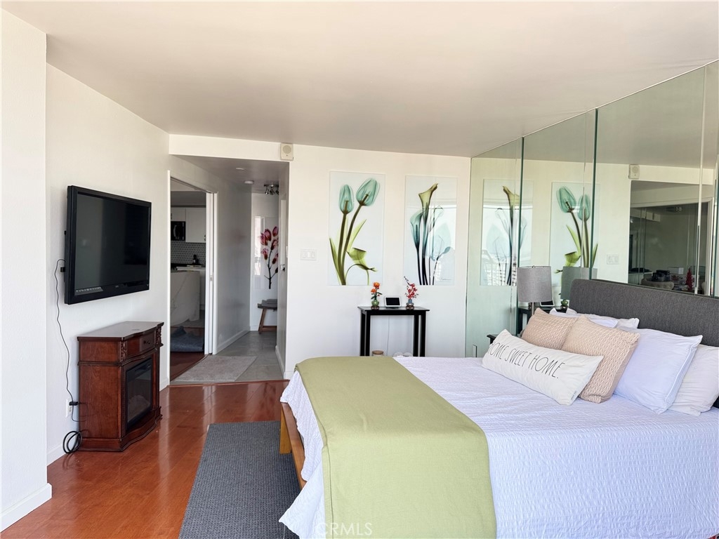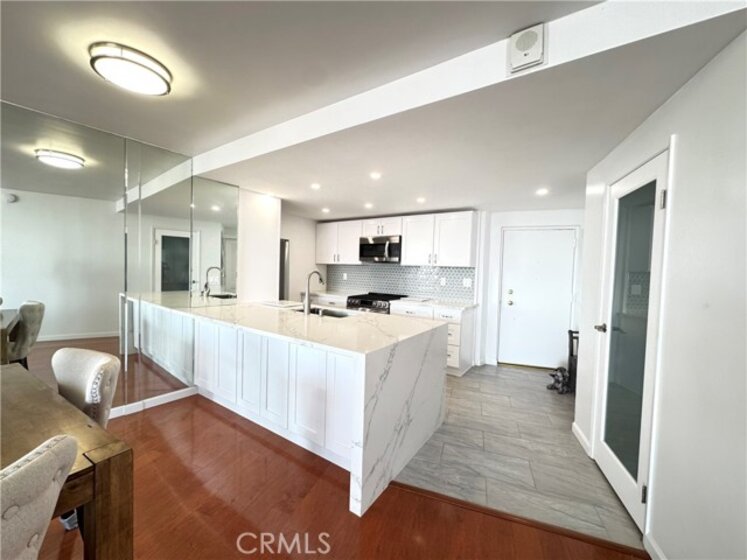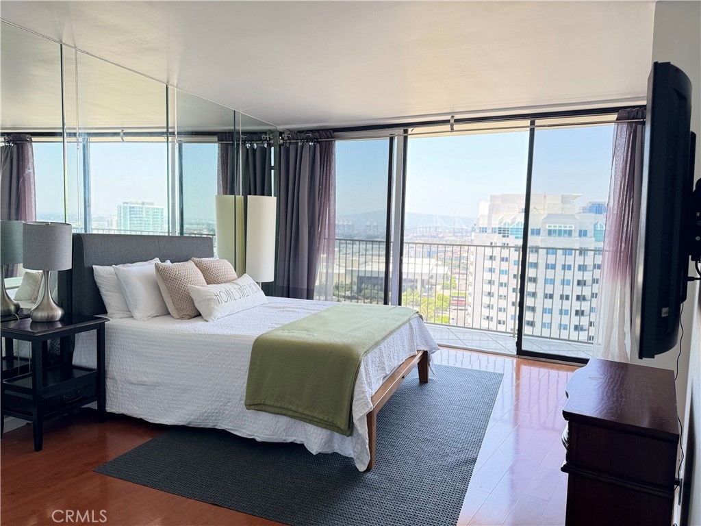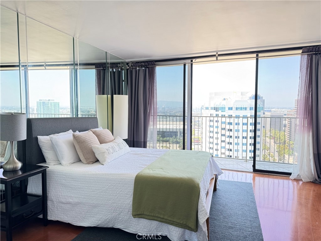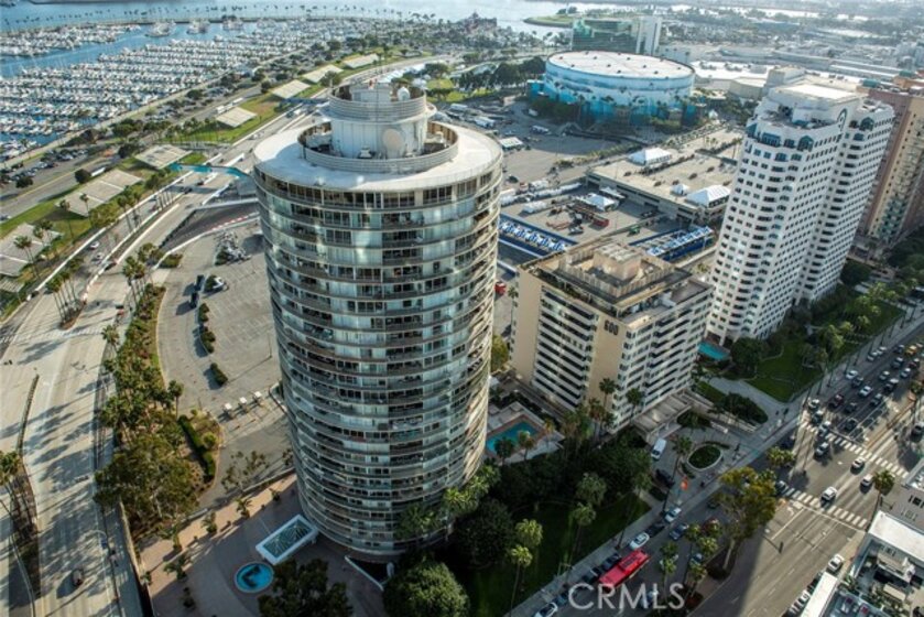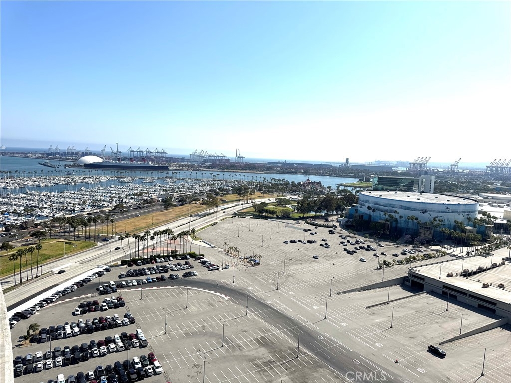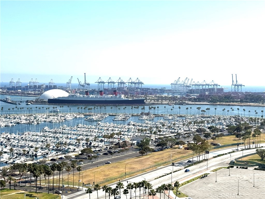 Located just steps from the beach. Experience an elevated coastal living in this breathtaking high-rise residence with unobstructed, postcard worthy views of the water and city skyline. Designed for both effortless entertainment and everyday luxury. The open-concept floor plan flows seamlessly from the remodeled kitchen adorned with white marble countertops into a spacious living and dining area, featuring warm, honey-toned hardwood floors. Floor-to-ceiling windows with natural light, while mirrored walls amplify the sense of openness and draw your eye straight to the stunning views beyond. This home features two generously sized bedroom suites, each with a private bathroom for ultimate comfort and privacy. The primary suite is a true sanctuary, highlighted by elegant glass pocket doors, a walk-in closet, and a spa-inspired open bathroom designed for relaxation. The second suite offers incredible flexibility, perfect as a guest retreat, home office, gym, or stylish den. Whether you’re sipping morning coffee as the sun rises or hosting sunset cocktails overlooking the Marina, the views are nothing short of spectacular. Residents enjoy an impressive suite of amenities, including a fully equipped fitness center, swimming pool, 24-hour security desk, meeting rooms, and one designated parking space. Just steps from the beach, premier dining, shopping, and entertainment, this unbeatable location puts Shoreline Village, the Aquarium of the Pacific, and the thrill of the Long Beach Grand Prix right outside your door—while your private balcony remains your front-row seat. A MUST SEE!
