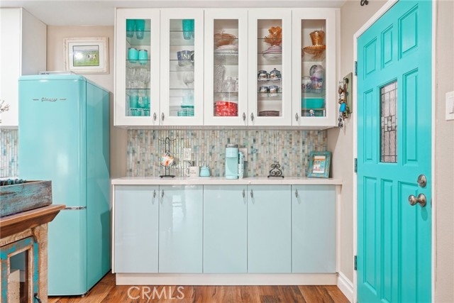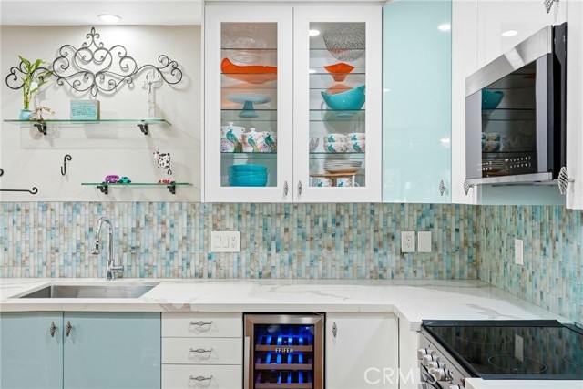 Experience relaxed coastal living in this beautifully updated loft-style condo with water views. This one-bedroom, one-bath home has been thoughtfully upgraded throughout, offering a bright and open floor plan accented by beach-inspired tones and luxury vinyl plank flooring. The living area features plantation shutters and opens to a private patio overlooking the tranquil lakes—perfect for relaxing and enjoying the scenery. The newly remodeled kitchen offers custom cabinetry, quartz countertops, a farmhouse sink, and a stylish retro refrigerator. All appliances are included for your convenience. A redesigned staircase with an elegant decorative iron railing leads to the spacious loft bedroom. The remodeled bathroom boasts marble flooring, a jetted soaking tub, and an Italian marble shower. The generous walk-in closet not only provides excellent storage but also includes an oversized washer and dryer. Additional modern upgrades include updated electrical and plumbing systems, a new wall-mounted AC/heating unit, and an EV charging outlet at the covered carport. Live the lifestyle you’ve been dreaming of—comfort, style, and waterfront surroundings all in one.