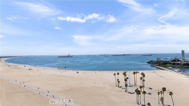 Experience timeless elegance and coastal sophistication at the beautiful iconic Villa Riviera, one of Long Beach’s most celebrated historic landmarks. This spacious 702 sq ft studio (Unit #306) seamlessly blends old-world charm with modern comfort, featuring high ceilings, original hardwood floors, coved plaster walls, and French-mullioned windows that fill the space with natural light. The open floor plan offers a generous living and dining area. The kitchen offers plenty of cabinets and a closet in the dining room which can be used as a pantry. The bathroom has original tile with 1920s architectural character. Enjoy city and ocean views on the sundeck, just steps from the sand, Shoreline Village, East Village Arts District, and Long Beach’s vibrant downtown, with a very high walk score. The HOA dues include all utilities—electricity, gas, water, internet, and cable TV—offering exceptional value. This property also qualifies for the Mills Act, providing substantial annual property tax savings. Residents enjoy secure entry, laundry facilities, and easy access to local dining, entertainment, and the coastal bike path. Parking available nearby; seller to provide six months of off-site parking to provide time to obtain on-site parking.