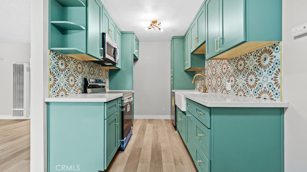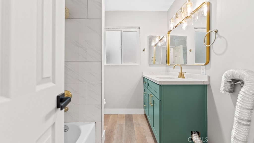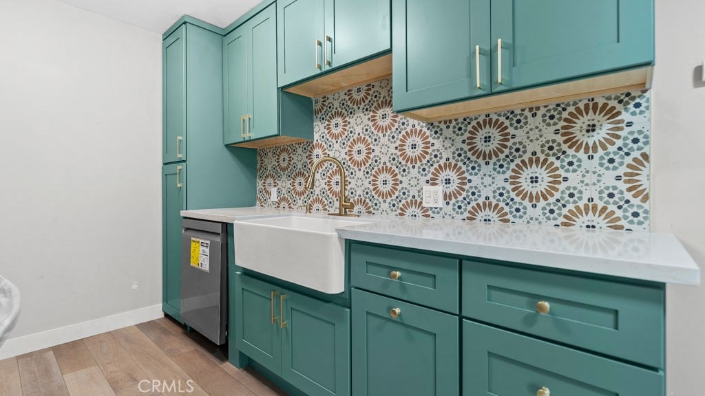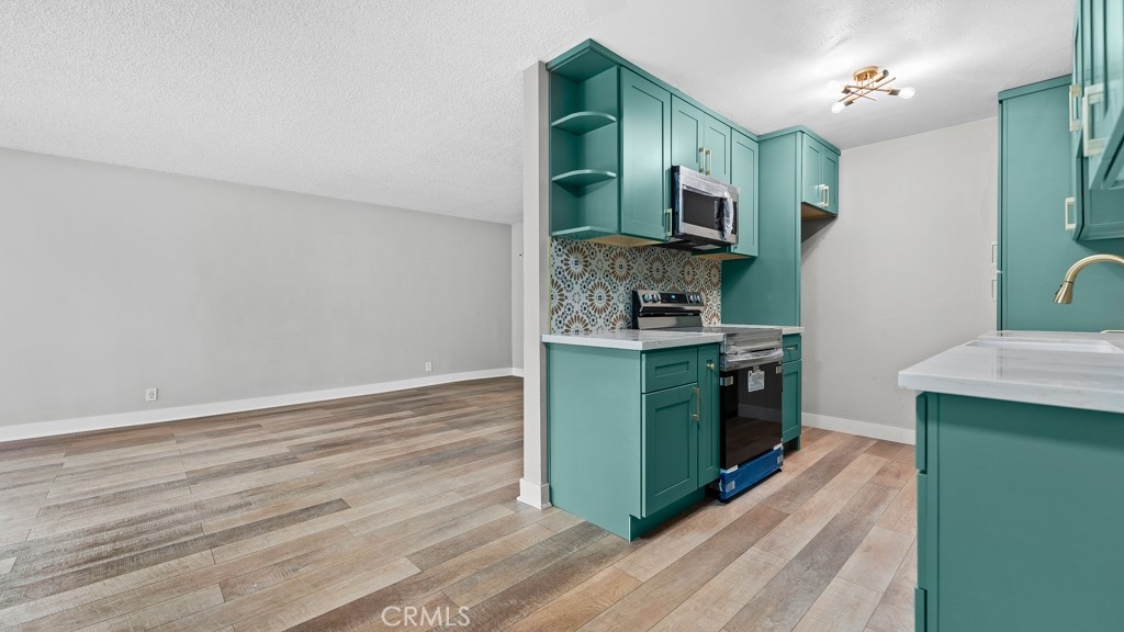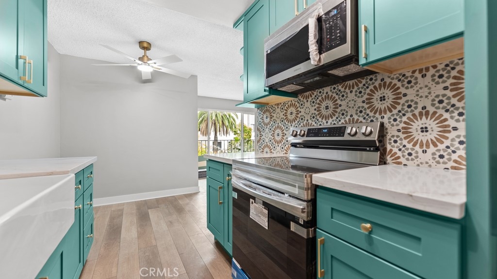 Welcome to 801 E 1st St #3 – a beautifully remodeled unit featuring brand-new wood flooring throughout, fresh paint, and new dual-pane windows for enhanced comfort and energy efficiency. The designer kitchen shines with green shaker cabinets, quartz countertops, gold finishes, and brand-new appliances including a stove, microwave, and dishwasher. The bathroom has been tastefully upgraded with modern tile and fixtures. This move-in-ready gem blends classic charm with contemporary updates—just minutes from the beach and downtown Long Beach.
