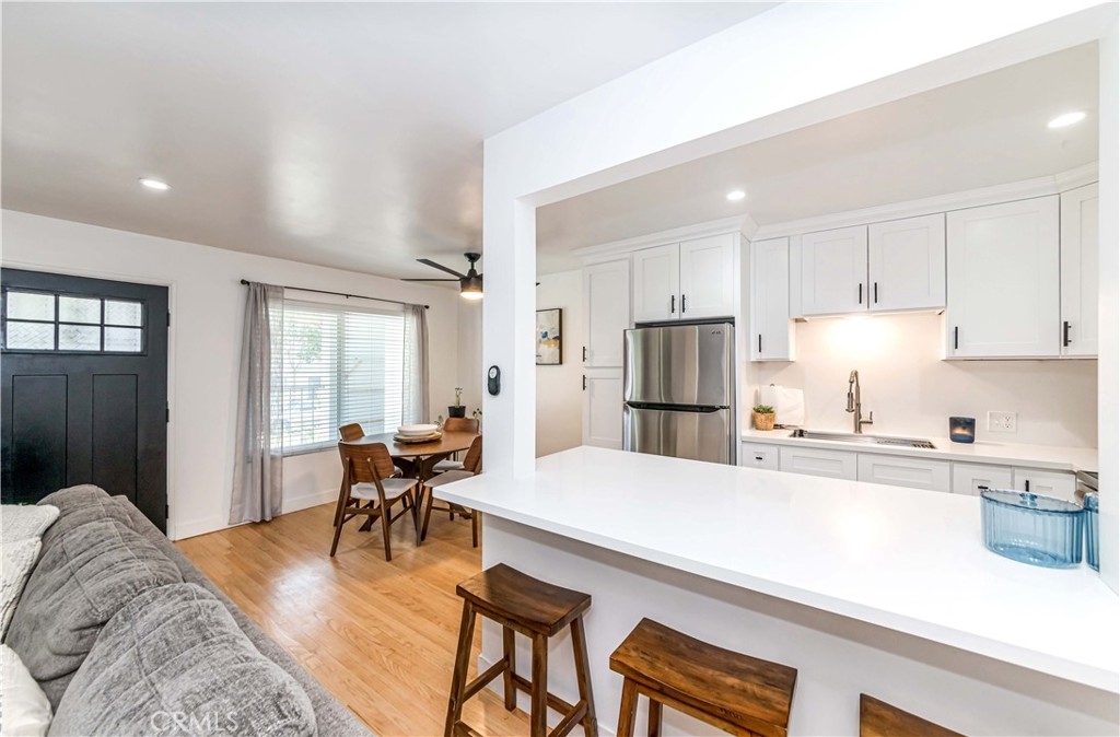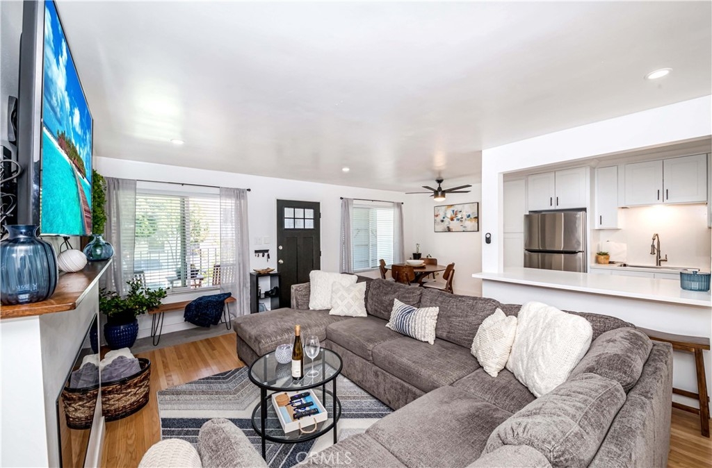 Welcome to your new beachside retreat! Just a block from the shore, this one bedroom, one bathroom condominium is perfect for laid-back coastal living. The open floor plan features a newly upgraded kitchen with LG ThinQ Smart Appliances , quartz countertops and sleek shaker cabinets with soft close features, pantry and adjustable shelves. Kick back by the electric fireplace and enjoy the natural light streaming through double pane windows complemented by original refinished hardwood floors in an organic light shade, a modern front door and fans with remote control dimming. This place has the right vibes. You love the useful in unit laundry with an LG ThinQ smart washer and dryer that can be controlled via app from your phone, next to a spa – like remodeled bathroom. The condominium complex offers individual storage closets for each unit and secured mailboxes for added convenience. Please inquire about possibility for monthly parking. Located near Long Beach landmarks such as the Queen Mary, the Long Beach convention Center, the Pike outlets, shopping, dining and with easy freeway access this condo lets you soak up the beachside lifestyle while staying connected to the city. Please check the property video under *video tour*. Seller is very motivated!! Submit an offer and make this beachside retreat your own!