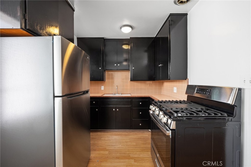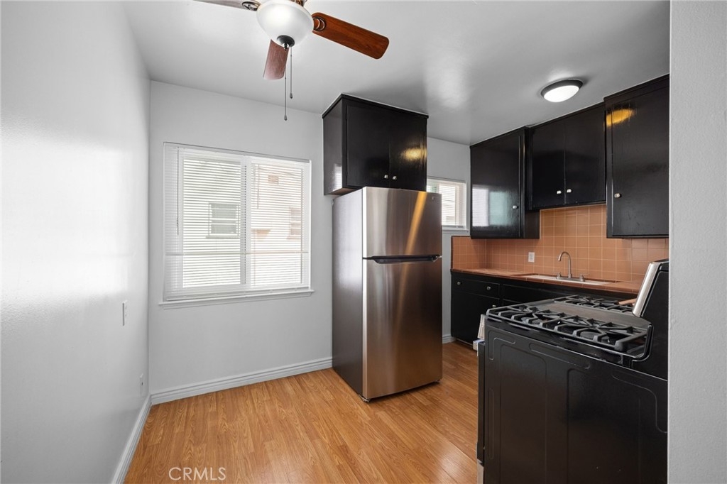 Welcome to this charming 1 bed, 1 bath condo, located in the heart of the east village and arts district, near downtown Long Beach! This cozy unit features beautiful wood floors throughout, adding warmth and character to the space, and tons of storage space. The kitchen boasts its original vintage tiles, a unique touch for those who appreciate some retro charm, and enjoy the brand new stainless steel appliances to compliment. The bathroom has been tastefully updated for modern living. You'll love the convenience of being close to shopping, dining, and entertainment at The Pike and Pine Street, plus the vibrant scene of 4th Street and Retro Row is just minutes away. The condo is in a small secured community with an on-site laundry room and lush, landscaped courtyard that offers a peaceful retreat right outside your door. This unit is on the second floor, back of the building, away from the street noise. There is no unit above or below! Perfect for anyone looking to enjoy all that Long Beach has to offer!