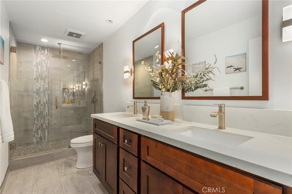 Experience California coastal living at its finest in this stunning two-bedroom, two-bath condo, perfectly situated next to the marina in the exclusive Marina Pacifica community. As you step inside, you’ll be greeted by a beautifully updated kitchen featuring sleek quartz countertops, brand-new cabinets, and brand-new stainless steel appliances. The adjacent laundry room adds convenience, while the nearby dining area flows effortlessly into the spacious living room. Sunken just a step down, the living room offers a cozy fireplace and a sliding glass door that leads to an extended patio—perfect for enjoying views of both the marina and the sparkling pool. This home is designed for modern comfort with recessed lighting throughout, all controlled by smart panels. Entertain with ease thanks to the built-in bar area complete with a wine fridge, and take advantage of the ample storage throughout. The primary bedroom features its own sliding glass door that opens onto the patio, as well as an updated en-suite bathroom with a double vanity and walk-in glass shower. The guest bedroom boasts a large closet, ceiling fan, and its own private bath, ensuring comfort for everyone. Additional upgrades in include a new HVAC unit and EV charging installed in one of the parking spaces. This resort-style community offers multiple pools, private underground parking, a clubhouse, and 24/7 on-site security. You’re just minutes from the best of Belmont Shore and Long Beach, with easy access to the Gelsons, Wholefoods and other shopping and dining at 2nd & PCH. Come see why life at Marina Pacifica is the ultimate in SoCal living!