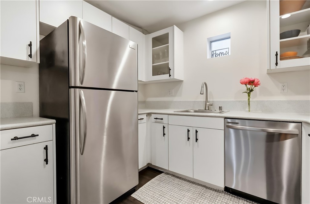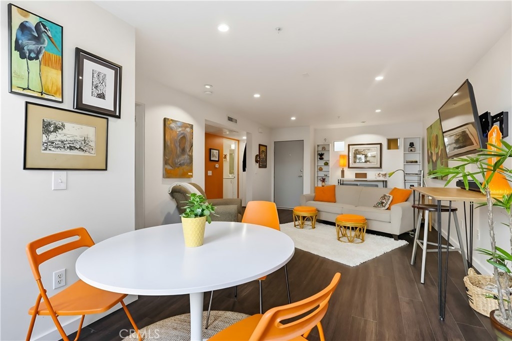 Welcome to The Lofts on 4th — East Village Living at its Best Discover your urban oasis at The Lofts on 4th, perfectly situated in the vibrant East Village. This lower-level loft offers the ideal blend of cozy comfort and modern design. Step inside to find a thoughtfully designed layout that makes smart use of space, featuring a nice sized living area with beautiful French doors that open onto a charming private patio, seamlessly blending indoor and outdoor living.Enjoy the rich, dark commercial-grade vinyl flooring throughout, complemented by recessed lighting that highlights your favorite artwork and adds a touch of sophistication. The kitchen, bedroom, and bathroom are all designed for comfort and functionality, and you’ll appreciate the convenience of a stackable washer and dryer.Just four blocks from the beach, this quiet interior unit is perfectly tucked away from the lively downtown energy; offering peace and privacy while keeping you just steps from the best restaurants, shops, and entertainment. The serene common area features palm trees and foliage in oversized planters, bringing a refreshing touch of greenery to the modern surroundings.Head up to the rooftop deck for summer barbecues and take in beautiful views that stretch for miles. From here, you’re a short stroll to the scenic shoreline bike path and minutes from Retro Row and downtown’s eclectic mix of eateries, boutiques, and nightlife.Opportunities to own in The Lofts on 4th are rare; come experience stylish coastal living where city energy meets seaside tranquility.