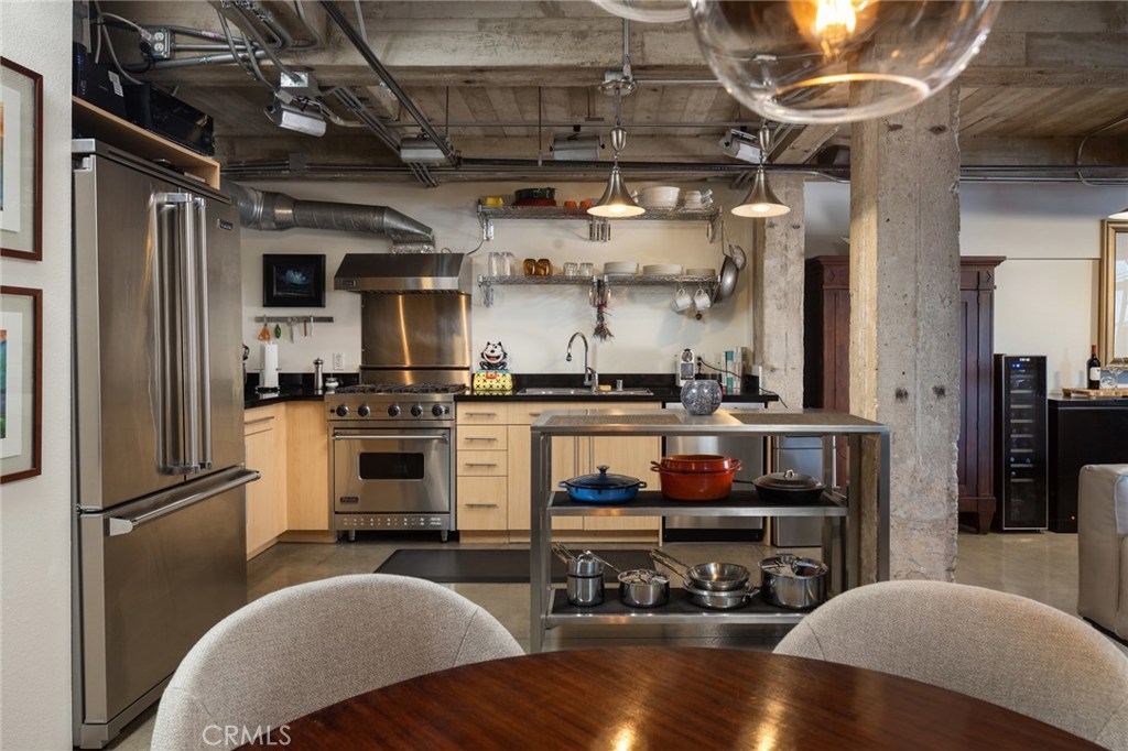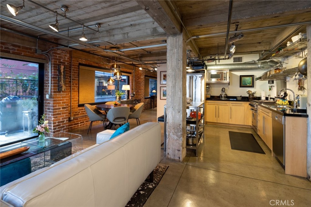 Welcome Home to unit 214 at the historical and iconic Masonic Temple Lofts! This single-story, end-unit loft exemplifies the best of loft living and the comforts of one of the most well-appointed buildings in downtown Long Beach. Open, flowing floor plan with original brick walls, polished concrete floors, and raw, concrete ceilings provide a sense of space and flow. Open concept industrial kitchen with Viking stainless steel appliances and granite countertops flex dining/living space is perfect for entertaining or for the creative who works from home. Large private patio with sliding glass doors provide a seamless indoor/outdoor transition to enjoy the SoCal evenings. Private bedroom area is cleverly sectioned off with modern sliders from the Sliding Door Company providing privacy and separation of space when desired. Central AC & Heat, secured parking, secured, private guest parking, community features include a fitness center, jacuzzi, fire pit, 2 separate BBQ areas, magnificent entrance lobby, bike storage, on-site maintenance, private storage areas and one of the most secure buildings downtown. Close proximity to dining, shopping, nightlife and public transportation in one of the most vibrant and trendy areas of Long Beach!