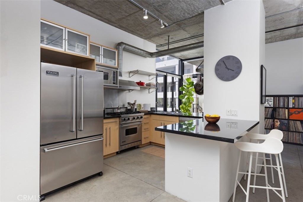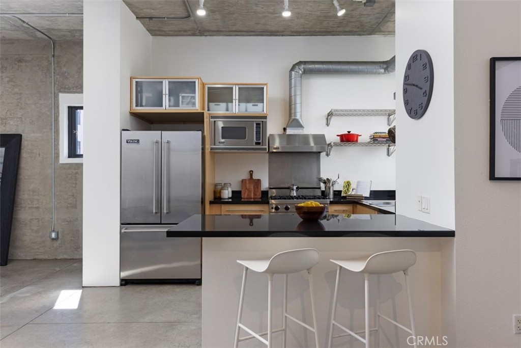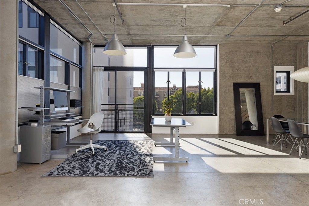 Welcome to Unit 323 at the historic and iconic Masonic Temple Lofts. This north, south, west-facing end unit, located in the south tower, embodies minimalist, luxurious loft living. With polished concrete floors, high concrete ceilings, and floor-to-ceiling windows, this corner unit is bathed in natural light. The open-concept floor plan seamlessly connects the living, entertaining, and dining areas, creating a fluid, modern space. The kitchen is equipped with sleek black granite countertops, stainless steel Viking appliances, ample storage, and a convenient breakfast counter. The large private patio is ideal for al fresco dining or enjoying Southern California's perfect evenings. The dual-vanity bathroom includes both a shower stall and a shower-over-tub combination, while the in-unit laundry area provides extra storage. A custom wardrobe with sliding doors in the living area adds a stylish, minimalist solution for storage that blends effortlessly with the loft’s aesthetic. The Temple Lofts community offers a range of premium amenities, including a fitness center, private storage spaces, a community clubhouse, a deck with built-in BBQs and a fire pit, onsite maintenance, and secure guest parking. This unit also comes with new HVAC and two assigned parking spaces. Located near dining, shopping, coffee shops, fitness studios, the convention center, Pine Ave, The Pike, and Ocean Blvd, this loft offers both luxury and convenience in the heart of Long Beach.