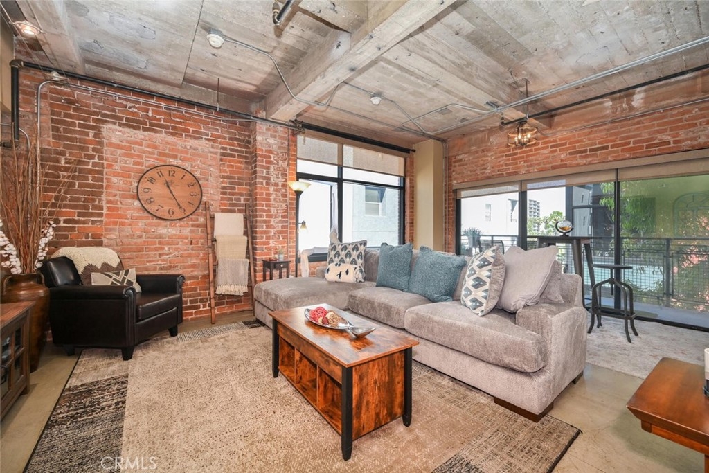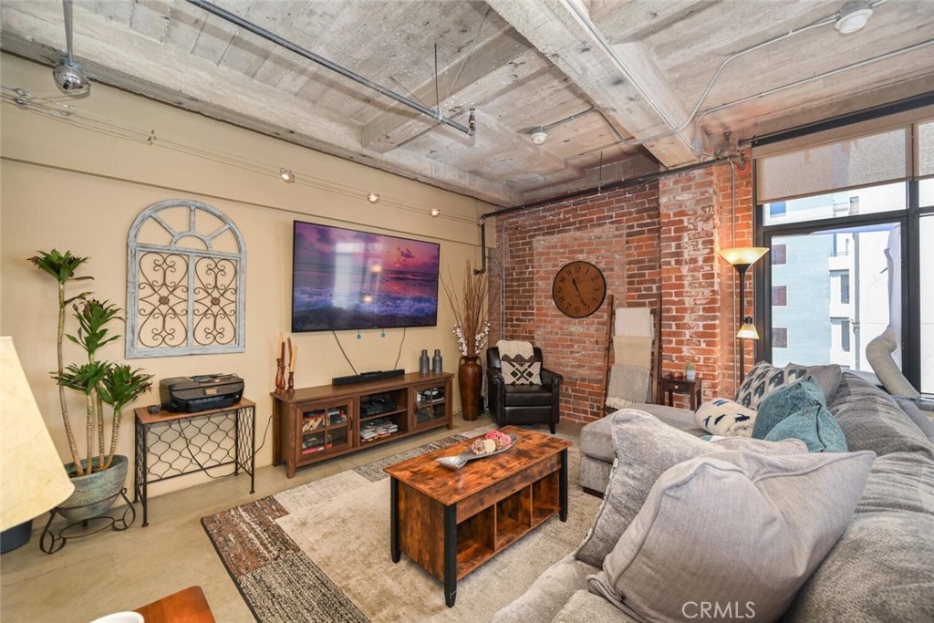 A true staple of historic Long Beach, the Masonic Temple dates back to 1927. It was brilliantly renovated and converted in 2005 into what is now The Temple Lofts. This large, open concept 1 Bedroom, 1 Bathroom loft is a corner unit, ideally located on the fourth floor, allowing plenty of natural light and fresh air to enter the unit through the impressive oversized windows and sliding doors. With brick and concrete walls, beams, and floors, this trendy loft offers an ample living area with a comfortable living room space and a convenient dining area adjacent to the open kitchen. The kitchen has a top-of-the-line Viking 4-burner stainless steel stove and oven, a Viking Microwave oven, a stainless steel refrigerator/freezer combo, and plenty of storage and shelf space. Adjacent to the living room, you will find the spacious balcony that overlooks the interior courtyard. The bedroom has two custom built-in closets and a separate closet that houses the washer and dryer. The adjacent bathroom has a shower with a bathtub and plenty of shelving for storage. The Temple Lofts building offers an impressive front lobby, two elevators, common BBQ and outdoor dining areas, fire pit, spa, gym, secure bicycle storage, visitor parking, and a clubhouse equipped with top-of-the-line Viking appliances and a pool table. This unit has one assigned parking space, #5, and one assigned storage unit, #69. A brand new central AC/Heat unit is being installed.