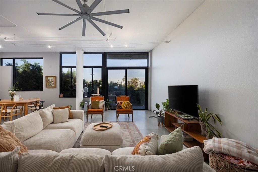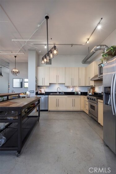 Welcome to Unit 421 at the iconic Temple Lofts, where historic character meets modern loft living in the heart of downtown Long Beach. This striking east coast–inspired loft features soaring concrete ceilings, polished concrete floors, exposed ductwork, and dramatic floor-to-ceiling windows that fill the space with natural light. The open concept floor plan creates a seamless flow between living, dining, and kitchen areas. The kitchen is well appointed with stainless steel Viking and Bosch appliances, granite countertops, and a custom-built island with seating—perfect for everyday living or entertaining. A custom brick accent wall adds warmth and character to the industrial design. The remodeled bathroom offers a spa-like feel with a two-person steam shower, while the spacious laundry room provides abundant storage. A thoughtfully separated bedroom area adds privacy while maintaining the open loft aesthetic. Step outside to your private balcony and enjoy views toward Signal Hill and Los Angeles. Temple Lofts offers exceptional amenities including secured parking, a fitness center, spa, BBQ area, guest parking, and a community clubhouse. This unit also includes one assigned parking space and a private storage cage. Ideally located near the best of downtown Long Beach dining, shopping, entertainment, and public transportation.