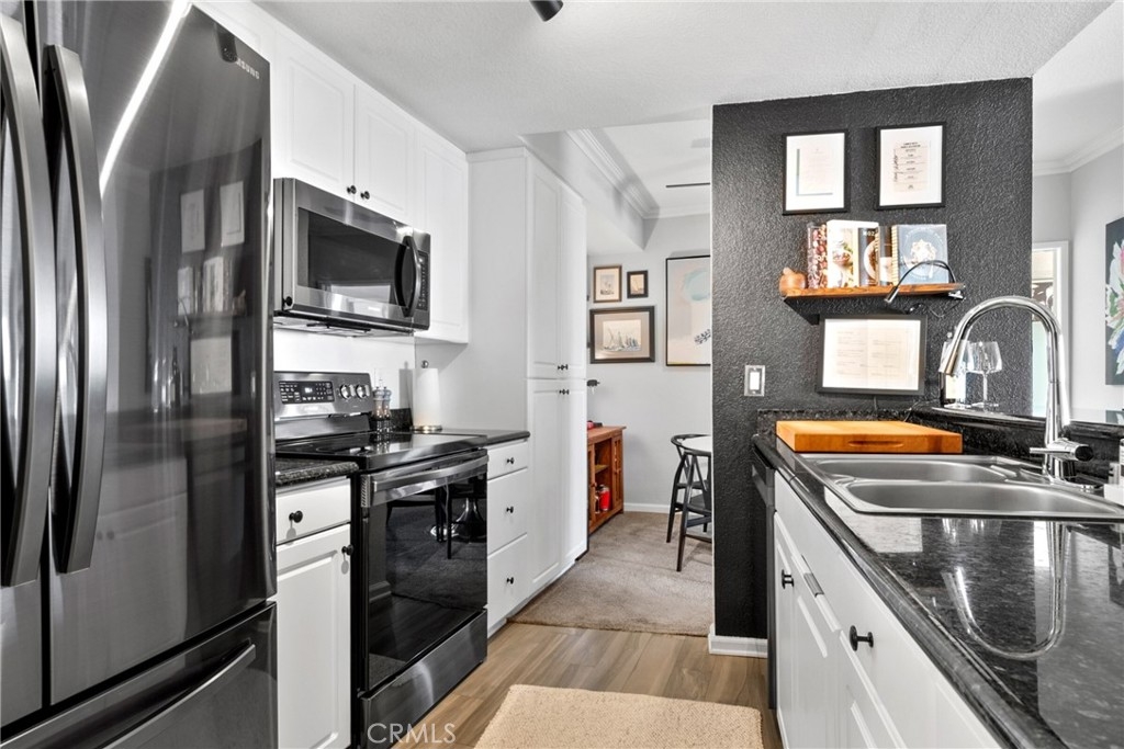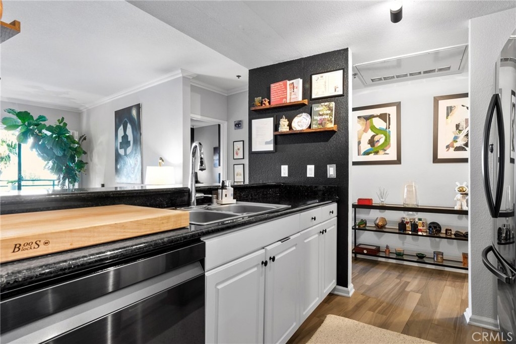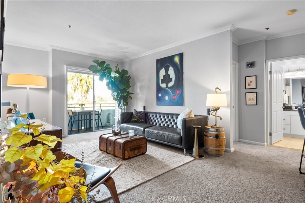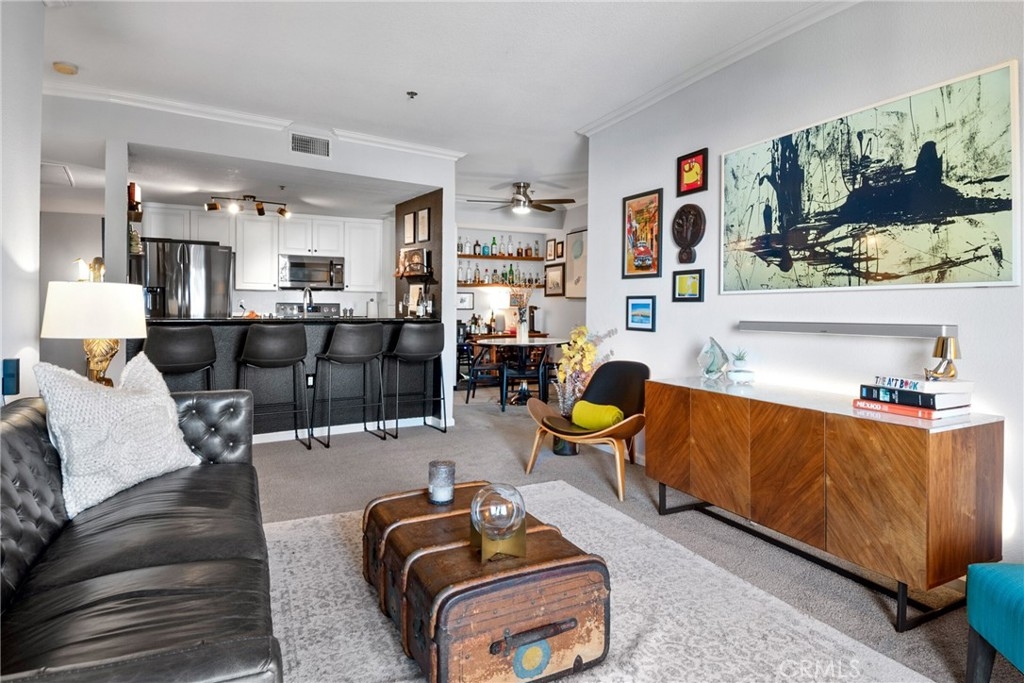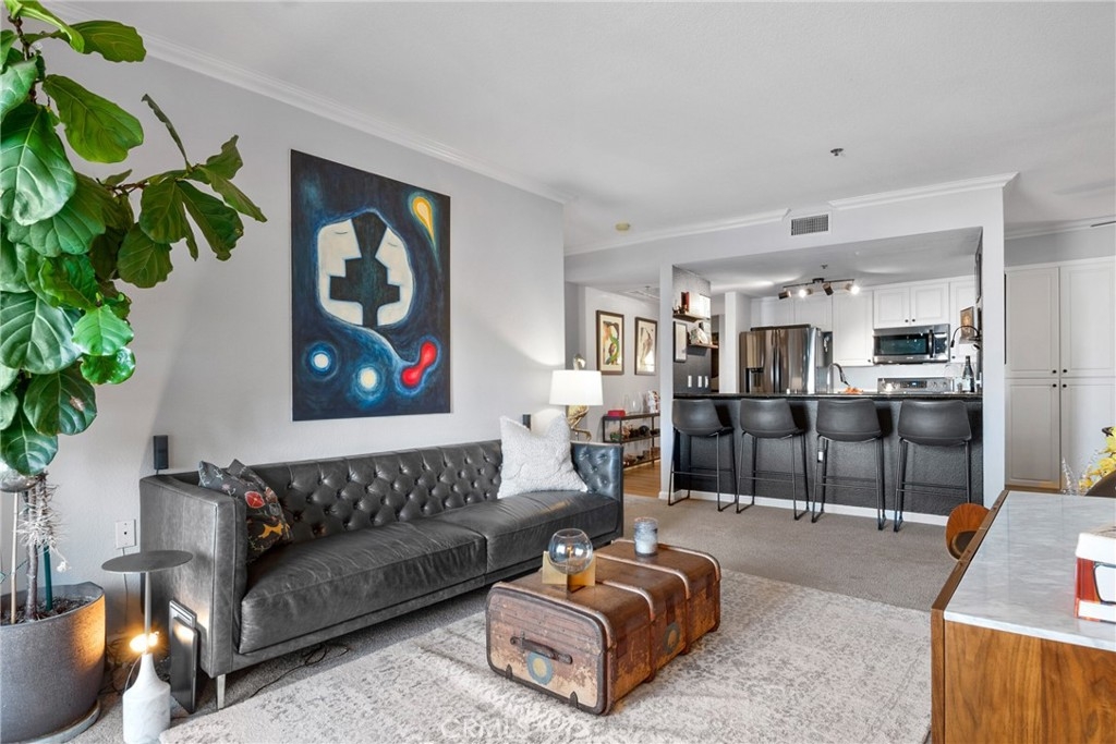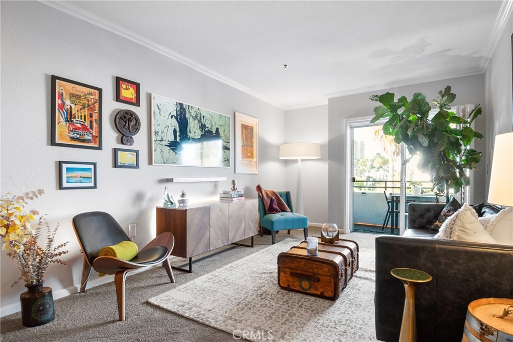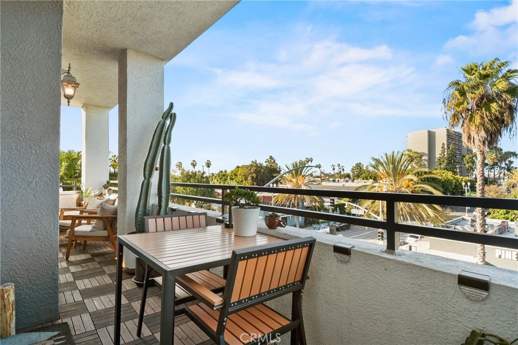 Experience urban luxury in this upgraded Pine Ave condo, located in a prime downtown complex. Move-in ready, the unit features custom paint, plush carpet, plantation shutters, crown molding, and Italian tile flooring. Kitchen boasting granite countertops and stainless steel appliances. Guest bathroom completed with a custom walk in shower upgrade. Situated on the third floor, this corner end unit offers privacy and sunset views from the balcony with access from the living room and Primary suite. Two side-by-side parking spaces and storage units are included. Centrally located with a 94 walk score, enjoy easy access to restaurants and nightlife. The secured building includes elevators, bike storage, Luxer lockers, and a rooftop deck with stunning views and a community Grill. FHA/VA financing available. Modern amenities include newer Samsung appliances, a Smart Moen Faucet, and custom upgrades throughout. Don't miss the opportunity to call this Long Beach condo home.