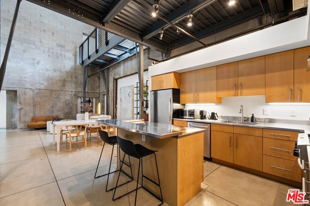 Dreaming of a walkable neighborhood that is diverse, pet and bike friendly, and near the beach? Welcome Courtyard Lofts in Downtown Long Beach at 849 Pine Ave Unit O (aka 831 Pine Ave). Designed by local architecture firm, Studio One Eleven, this development is comprised of 16 industrial-style lofts circling a communal garden courtyard. It was the recipient of the 2009 AIA (American Institute of Architects) Housing Award recognizing its innovative multifamily design. As you enter through the front door, you are greeted by a welcoming expanse with ultra high ceilings and open floor plan seamlessly connecting the kitchen and the stairs leading to the loft above. The kitchen features sleek stainless-steel countertops and a versatile island that serves as both a workspace and a breakfast bar. Equipped with top-of-the-line appliances including a refrigerator, dishwasher, oven, and stove, it's as functional as it is stylish. Abundant storage options ensure clutter-free living. The bathroom was renovated within the last two years, complete with a walk-in shower, bidet, heating towel rack and an illuminated LED mirror. Ascending the stairs, you'll find the spacious and airy loft area with glass doors that open to a private balcony. From this vantage point, you can enjoy views of the surrounding neighborhood. All the doors and windows are equipped with motorized blinds. In-unit stackable washer and dryer. One assigned parking space in communal, above-ground garage. A short distance from Historic Pine Ave, The Promenade, Shoreline Village and more.