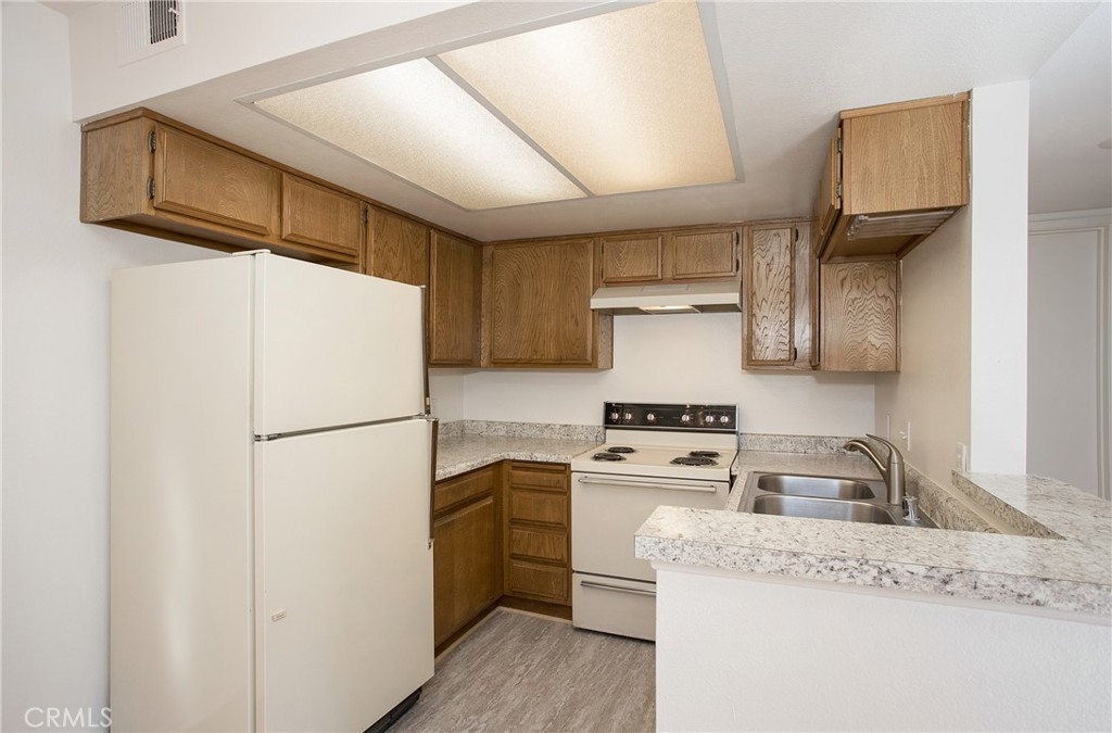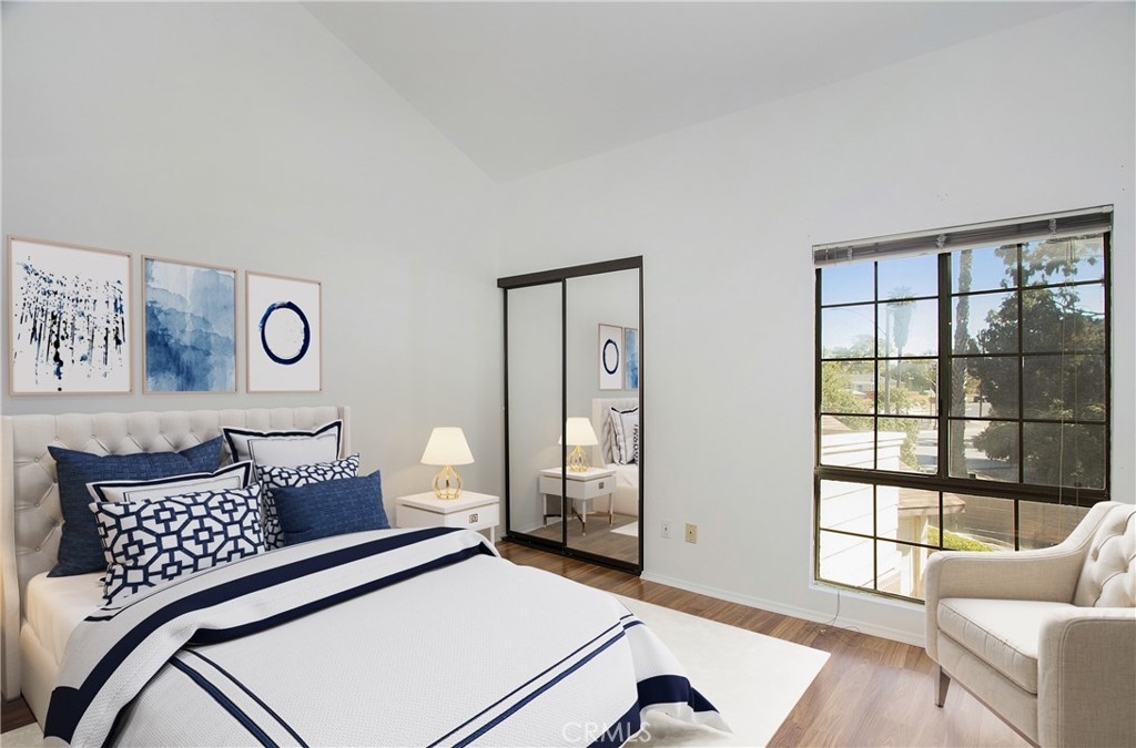 Light and bright upper-level corner unit with large view balcony has an open feel with vaulted ceilings and numerous windows including a large bay window in the living room. Located in a gated community, this welcoming one bedroom plus loft home offers laminate flooring on the main level, new Luxury Vinyl Tile flooring in the kitchen and bathroom, newer carpeting on the stairs and in the loft and textured ceilings. Freshly painted interior. Hot water tank is 5 months new. The open kitchen concept has newer Formica countertops, stainless steel sink and a refrigerator. A walk-in closet/pantry just off dining area is ideal for extra storage. Stackable washer and dryer is conveniently housed in its own closet. The roomy full bathroom comes with plenty of counter space, pantry, and dual shower heads. A vaulted ceiling, two mirrored wardrobes and a large window complete the bedroom, plus a large loft with a vaulted ceiling and two skylights can be used as a home office or additional bedroom. A single car detached garage is equipped with shelving. There is additional community parking in the development. An inviting community pool with outside shower and restroom are all found behind the gates of the Golden Point community. Just steps away from the 34th Street Greenbelt and bike trail, located close to Wrigley Dog Park, blocks away from Wrigley Heights and Bixby Knolls, walking distance to Metro A/Blue Line, bike path to downtown Long Beach, Shoreline Village and restaurants, and convenient access to 405 & 710 freeways. Exterior complex will commence painting within two to four weeks. Water and trash included in monthly HOA fee.