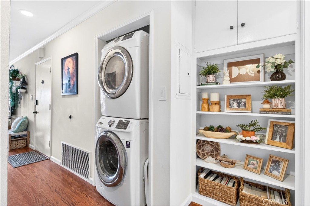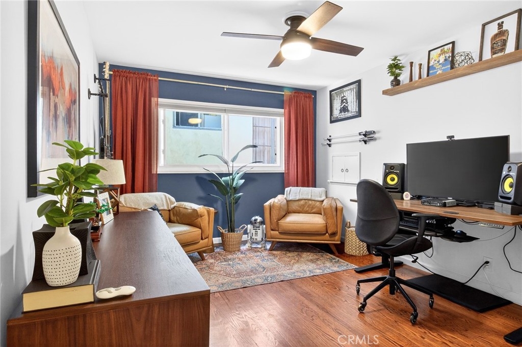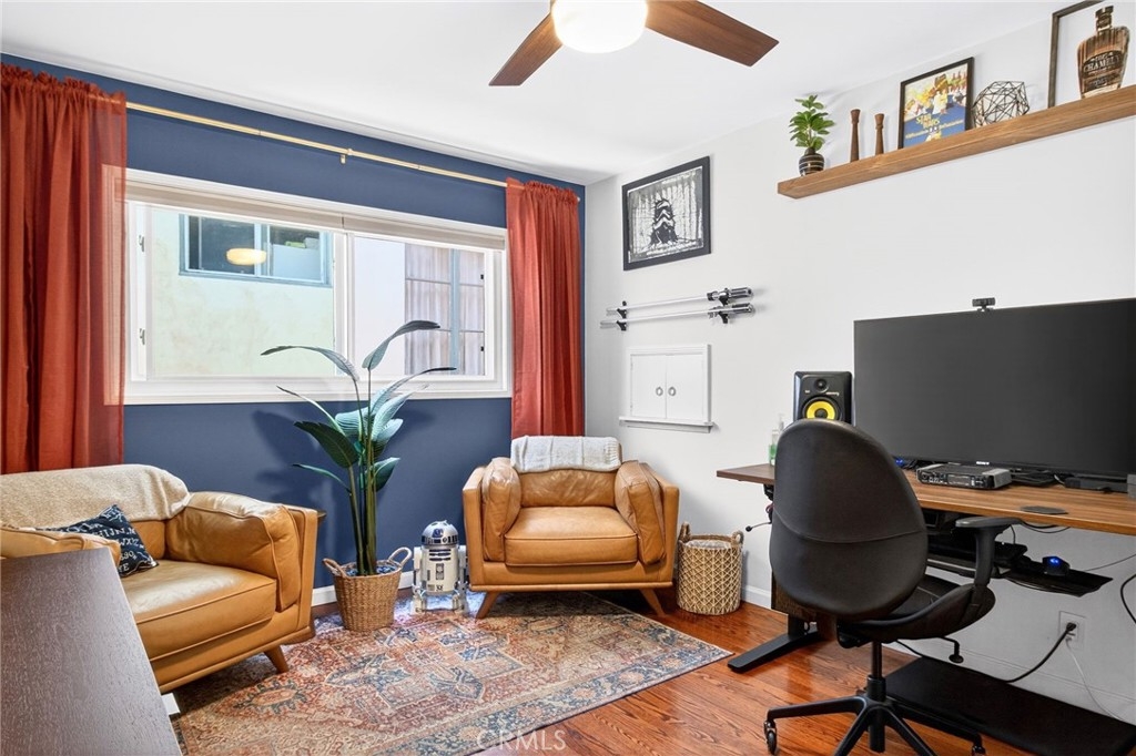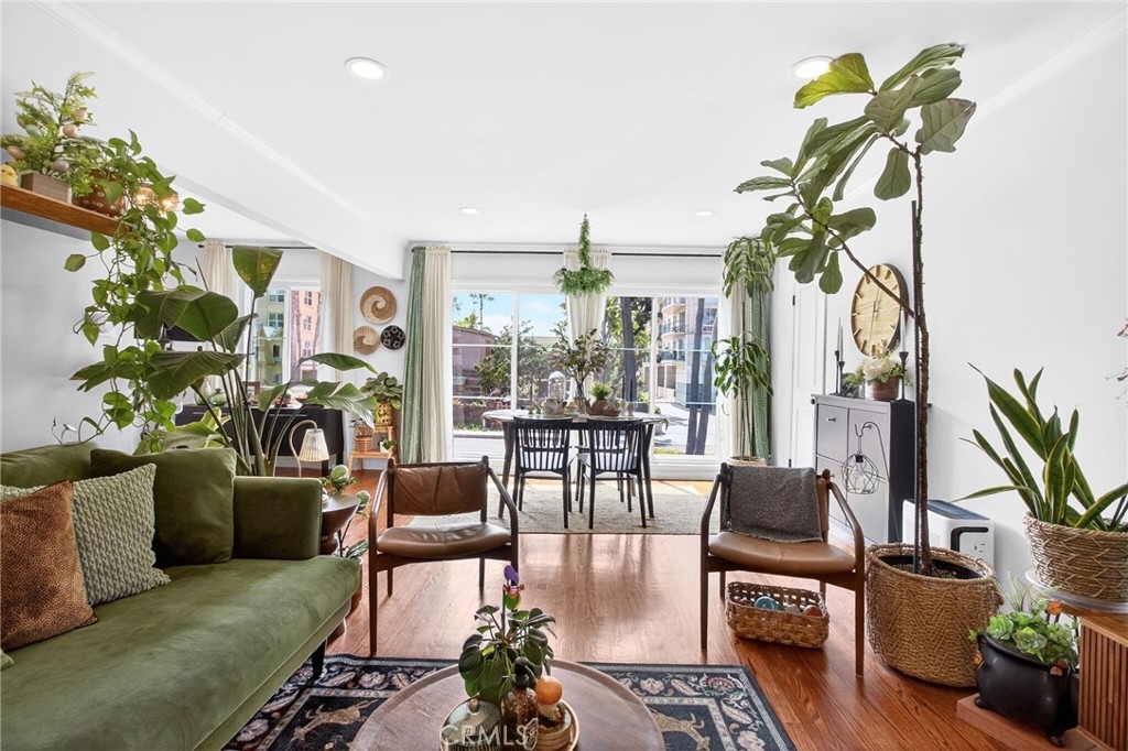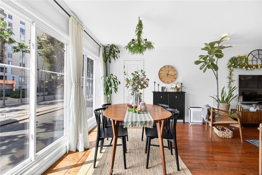 Welcome to your coastal retreat in the heart of Long Beach! This beautifully maintained 2-bedroom, 2-bath condo offers the perfect blend of comfort, style, and unbeatable location—just across the street from the beach. Step inside to find warm hardwood floors and a bright, airy living space highlighted by a stunning wall of windows that fills the home with natural light. Double-pane windows ensure peace and energy efficiency, and ceiling fans. The property has character throughout. The modern kitchen is designed to impress, featuring sleek granite countertops, stainless steel appliances, and a convenient dishwasher—perfect for both everyday living and entertaining. Enjoy the added convenience of an in-unit washer and dryer. Both bedrooms are spacious and well-appointed with large closets, and the home is equipped with a heat pump providing efficient central heating and air. Recessed smart lighting enhances the ambiance and allows for customizable comfort at your fingertips. Additional features include a private 1-car garage and a highly walkable location—just steps from the beach, popular restaurants, and local attractions like the Long Beach Aquarium. Whether you're looking for a full-time residence or a weekend getaway, this condo offers the best of coastal living. Don’t miss this opportunity to own your slice of Long Beach paradise!